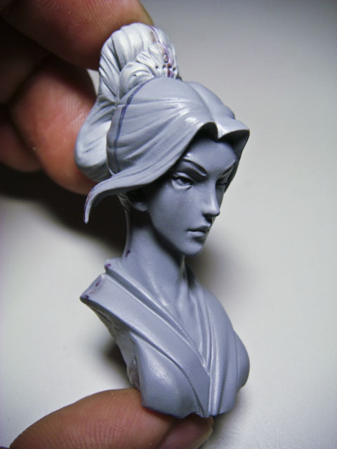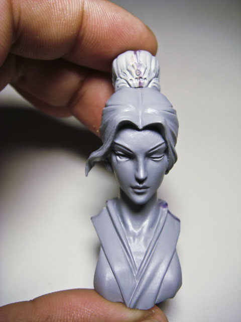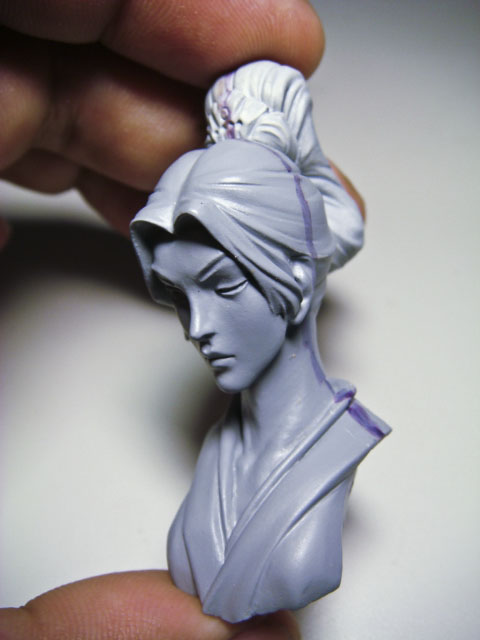 胸像は、左半分を整形前、右半分を整形後として造形しています。